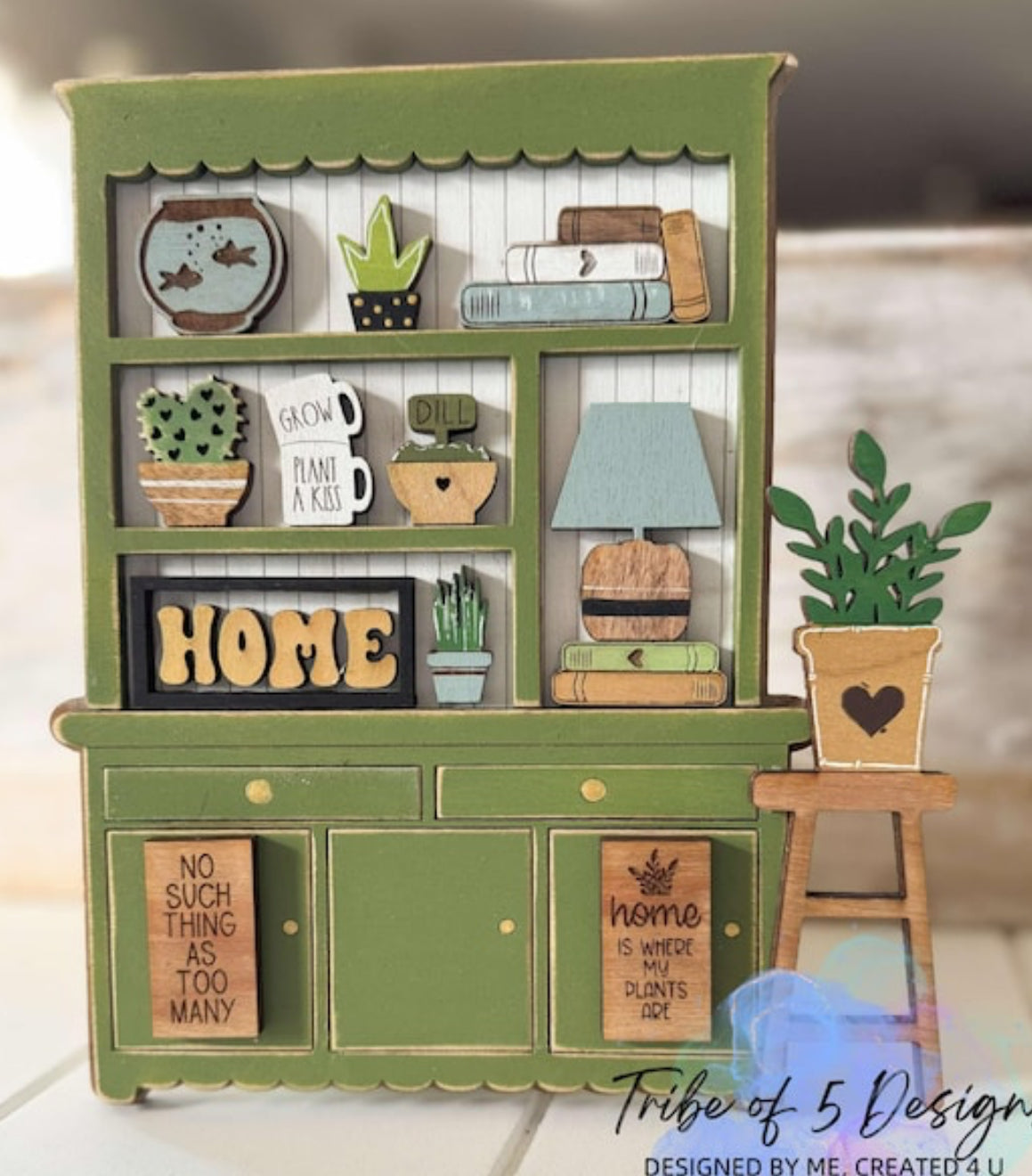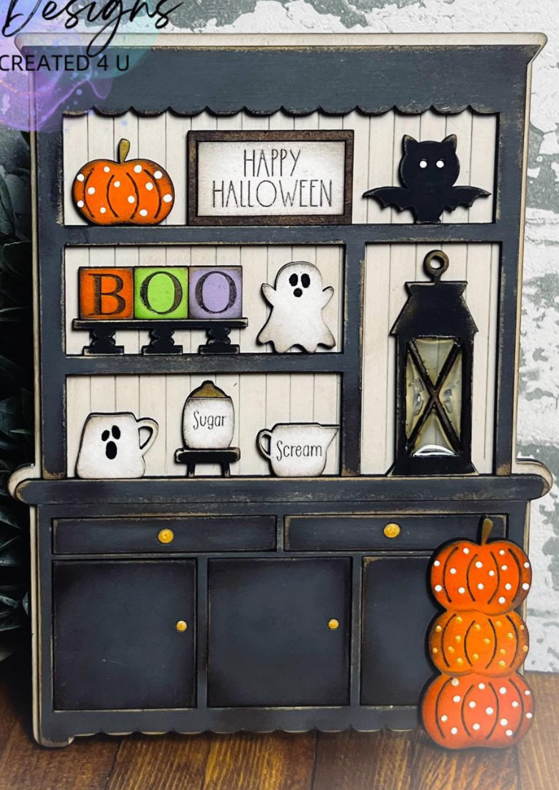 This is one of the crafts available for this session. It is a shelf sitter featuring a hutch with little collectibles to go on the shelves. The hutch measures 10” high and included a stand for the back. There are 12 different themed choices to choose from. Choose your favorite below.