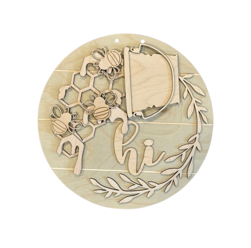 This is one of the many interchangeable inserts available for the 12” hanging round “hi” sign. This listing is for the BEE insert only. The base pieces- the round sign backer with “hi” wording, bucket and greenery piece - are available for purchase in a separate listing.