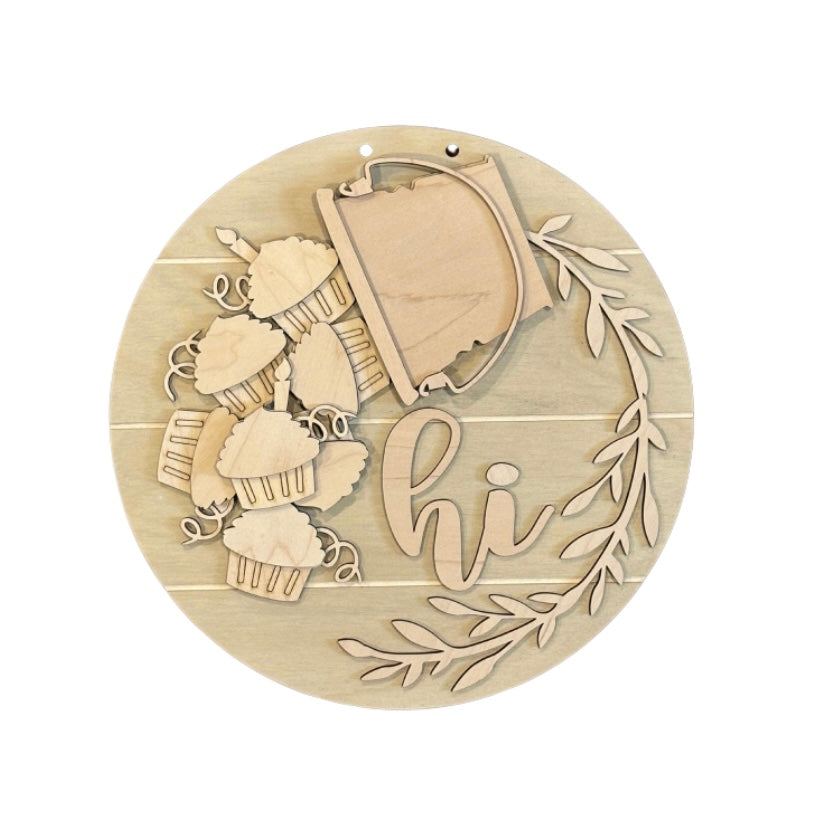 This is one of the many interchangeable inserts available for the 12” hanging round “hi” sign. This listing is for the CUPCAKE insert only. The base pieces- the round sign backer with “hi” wording, bucket and greenery piece - are available for purchase in a separate listing.